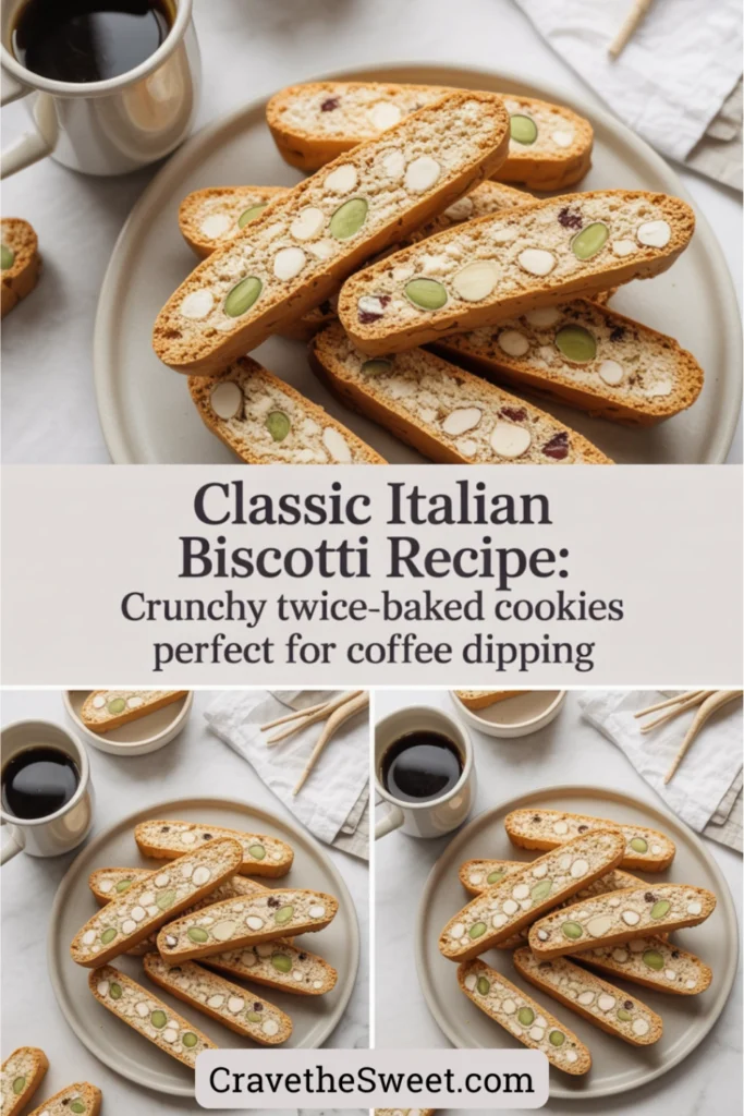 Biscotti are traditional Italian cookies that get their characteristic crunch from being baked twice. The name actually comes from the Latin words “bis” meaning twice and “coctum” meaning baked. Originally created as provisions for sailors and soldiers because of their long shelf life, biscotti have evolved into a beloved treat enjoyed worldwide. The dough is first shaped into logs and baked until set, then sliced into individual cookies and baked again until golden and crispy. This double baking removes moisture, creating that signature dry, crunchy texture that makes them perfect for dipping. While almonds are the traditional addition, you can customize your biscotti with different nuts, dried fruits, or chocolate chips.