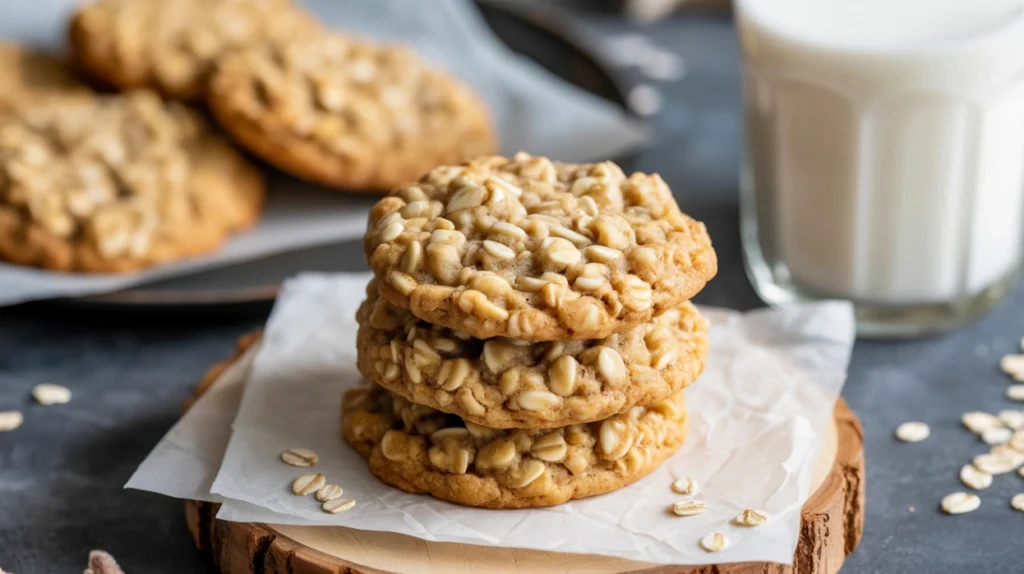 This oatmeal cookie recipe creates cookies that pair perfectly with a glass of cold milk—it’s the classic combination for good reason. They’re also wonderful dunked in coffee or tea, especially for breakfast or afternoon snacks. Hot apple cider is a perfect fall pairing that complements the cinnamon in the cookies. For a dessert presentation, serve them warm with a scoop of vanilla ice cream. The cookies are substantial enough to enjoy on their own as a snack or light breakfast. They’re perfect for packing in lunch boxes—they travel well and don’t crumble easily. For kids’ parties, set out cookies with milk in small glasses for an easy, crowd-pleasing treat. They also pair beautifully with fresh fruit like apple slices or grapes. During the holidays, arrange them on a cookie platter with other varieties for a festive spread.