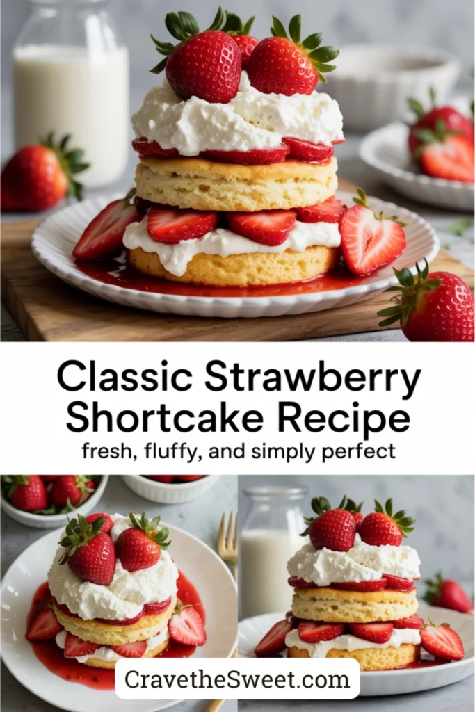 Strawberry shortcake is a classic American dessert featuring sweetened fresh strawberries layered between split biscuit-style shortcakes and topped with whipped cream. The “shortcake” refers to a lightly sweetened biscuit that’s rich in butter, giving it a tender, crumbly texture—the butter creates “short” strands in the dough rather than long, elastic ones.