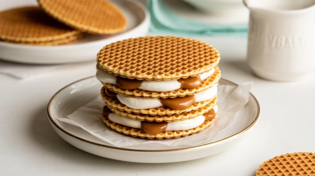 Proper storage maintains the delicate texture of stroopwafels. Once completely cool, store them in an airtight container at room temperature for up to two weeks. Layer them with parchment paper to prevent sticking from the caramel filling. They actually improve after a day or two as the caramel sets and flavors meld. If they become too hard during storage, you can soften them by warming briefly in the microwave for ten seconds or by placing over hot coffee as intended. Don’t refrigerate stroopwafels, as cold temperatures make them overly hard and can cause the caramel to crystallize. For longer storage, freeze them in airtight containers or freezer bags for up to three months, separating layers with parchment. They thaw quickly at room temperature, taking only about fifteen minutes. The unfilled waffle cookies can also be made ahead and stored separately, with the caramel prepared fresh when ready to assemble, though this is more work than simply storing finished stroopwafels.