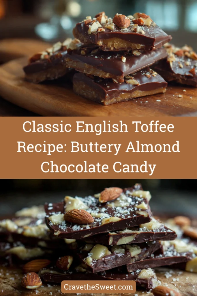Toffee is a hard, brittle candy made by cooking butter and sugar together to the hard crack stage, typically around 300°F. This toffee recipe creates English toffee, which features a layer of chocolate and chopped almonds on top, distinguishing it from plain butterscotch or other toffee varieties. The magic happens when butter and sugar are heated together—they undergo chemical changes that create that distinctive caramelized flavor and crunchy texture. Traditional English toffee includes almonds both mixed into the candy base and sprinkled on top of the chocolate coating. The candy became popular in England during the 1800s and has remained a beloved treat worldwide, particularly during the holiday season when its rich, buttery flavor feels especially festive.