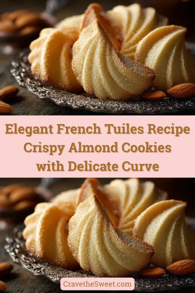 Your elegant tuiles are now ready to serve! These delicate, crispy cookies add a professional touch to any dessert plate. Whether you’re serving them with ice cream, using them as edible garnishes, or simply enjoying them with coffee, these beautiful French cookies never fail to impress. The combination of their delicate crunch, subtle almond flavor, and graceful curves makes them a sophisticated addition to your baking repertoire.