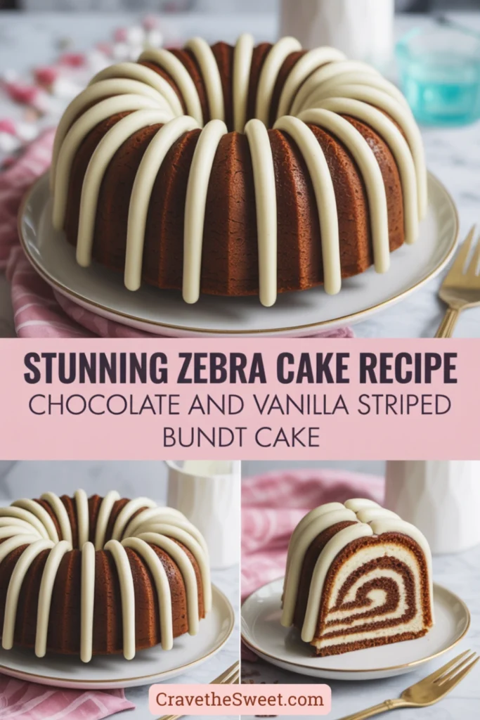 A zebra cake is a visually striking bundt cake featuring alternating stripes of vanilla and chocolate that radiate from the center in a pattern resembling zebra stripes. The effect is created by a simple but clever technique: spooning small amounts of vanilla and chocolate batters alternately into the center of a bundt pan. As each spoonful spreads outward, it pushes the previous layers to the sides, naturally creating concentric circles that appear as stripes when the cake is sliced. The cake originated in Eastern Europe and has become popular worldwide due to its dramatic presentation and straightforward preparation method. Unlike marbled cakes where batters are swirled together, zebra cakes maintain distinct separation between the chocolate and vanilla layers. The result is a geometric, almost hypnotic pattern that makes every slice look like a piece of edible art. The flavor is classic and approachable—nothing too exotic or polarizing—making it suitable for mixed audiences and various occasions.